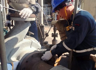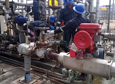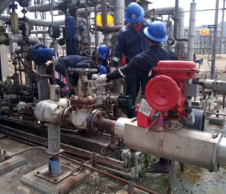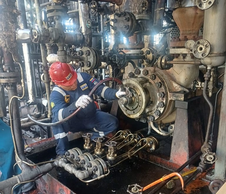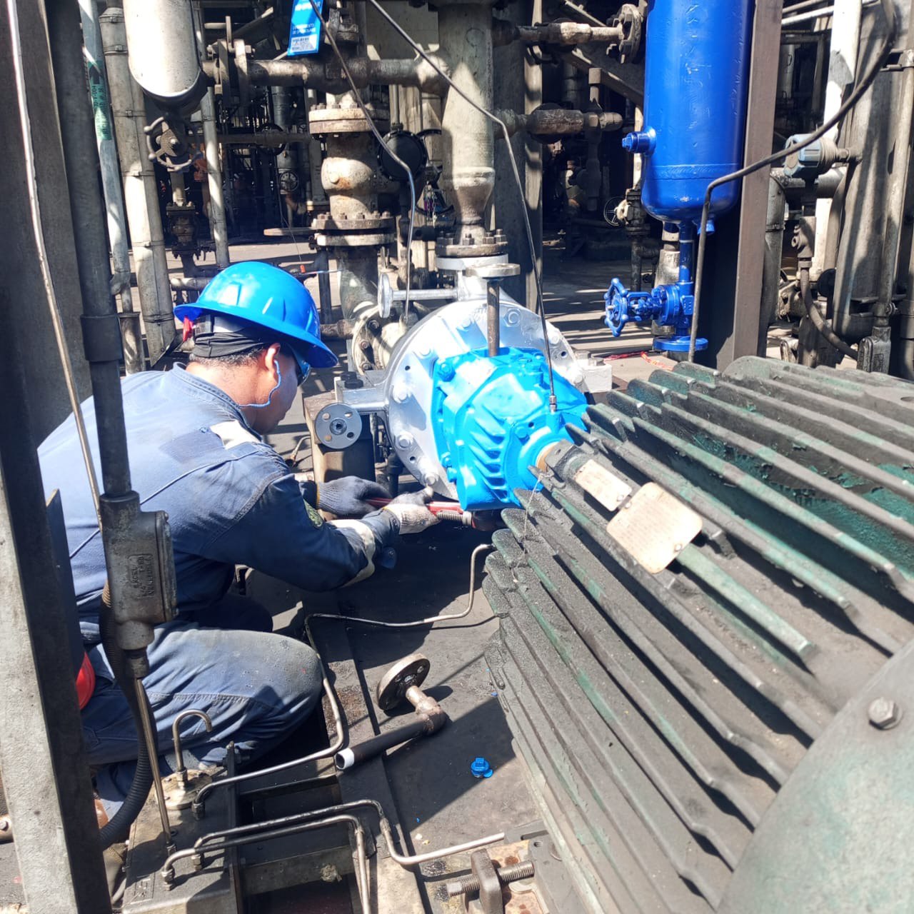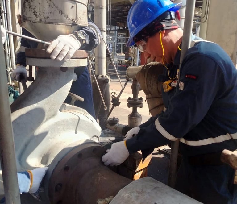 Contamos con una amplia disponibilidad de personal o fuerza labor para la asistencia en labores de mantenimiento preventivo y correctivo a unidades de procesos tales como unidades de crudo, hidrógeno, azufre y otros, atendiendo a todos los equipos y componentes que conforman estas áreas, teniendo la capacidad de ofrecer -con equipos propios- alineación de ejes con equipos láser de última generación, análisis de colectores de vibración y otros.
